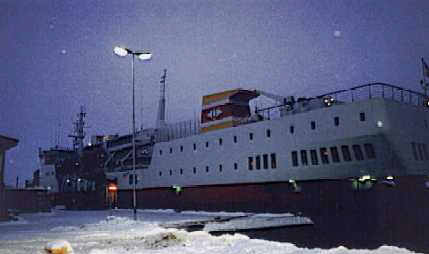 nicht sehr weit.Es war alles zugeschneit.Wie ich wieder auf dem Schiff war habe ich zuerst eine Blick aufs Thermometer geworfen. Die Temperatur von Morgens -2 war