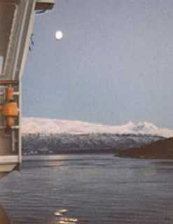 1.30 Uhr verlassen wir dann Tromsö und ich stehe noch solange an Deck bis wirklich die letzten Lichter verschwunden sind.In dieser Nacht liege ich noch liege ich noch lange wach,so beschäftigen mich diese Eiindrücke.